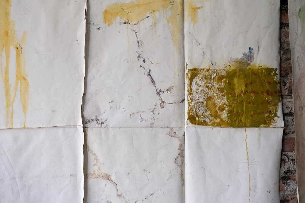 Oil on canvas and sewing thread